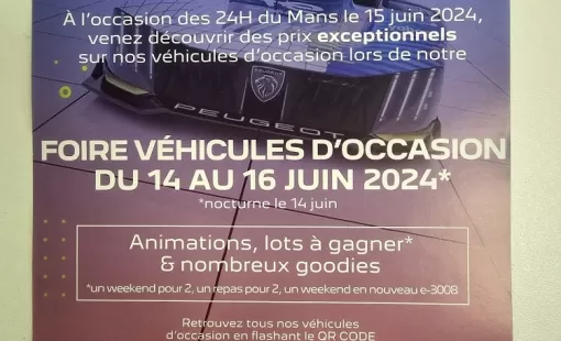 Le Garage des Fontaines de Gueugnon sera présent à la Foire des véhicules d'occasion chez Peugeot Montceau.