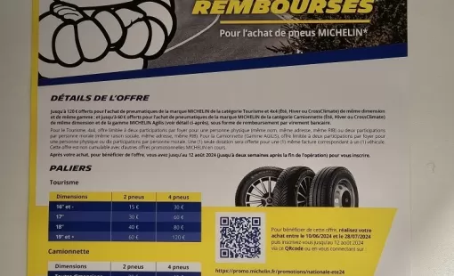 Dans votre garage des Fontaines du 10 juin au 28 juillet jusqu'à 120€ remboursés pour l'achat de pneus MICHELIN à Gueugnon.
